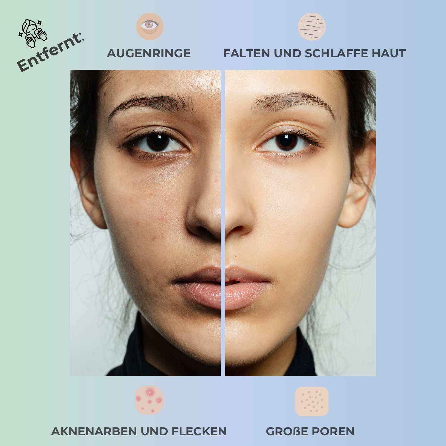 - Zielgerichtete Behandlung von Falten, Augenringen und Schwellungen – spürbare Ergebnisse nach nur wenigen Anwendungen.